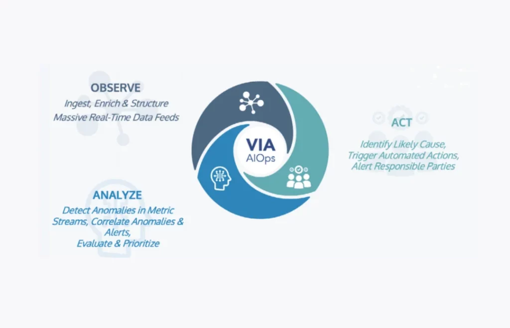 VIA AIOps improves the customer experience and reduces cost by lowering the time to detect incidents and accelerating time to resolve them. It’s a next generation AIOps application that acts across the entire incident pipeline from observation, to analysis and action. VIA delivers automated analysis and remediation of service and customer impacting incidents across all layers of service delivery.